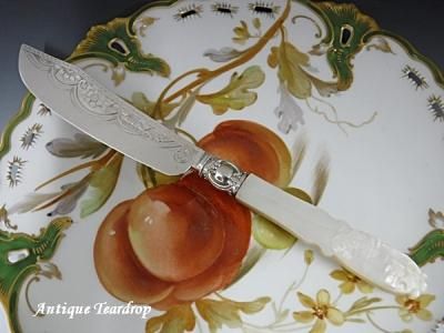 しっかりとした大き目サイズの白蝶貝ハンドルのバターナイフです。