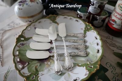アメリカのホワイティン社製の純銀製スミレ紋のバターナイフです。