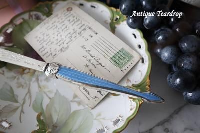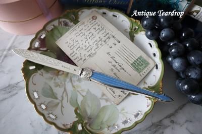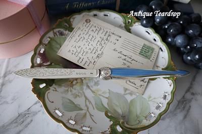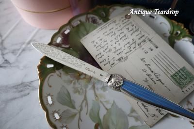 美しいブルーのエナメル細工の持ち手が見事が純銀製レターオープナーです。