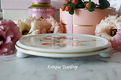 画像は、1人〜3人用サイズのティーポットを乗せています。参考にしてください。小さ目のティーポットですと、花紋も少し見えて優雅な雰囲気です。