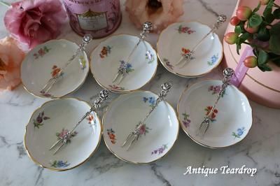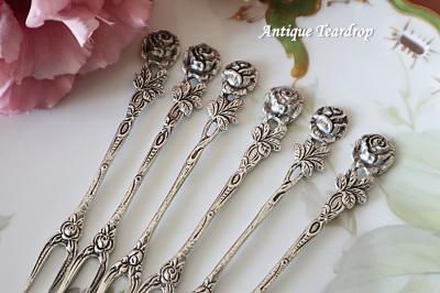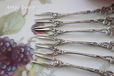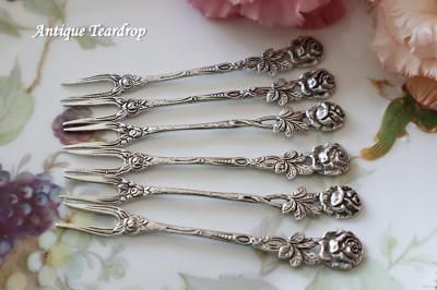 純銀製 ドイツ製 薔薇紋 ミニピックフォーク 6本セット