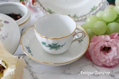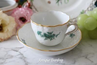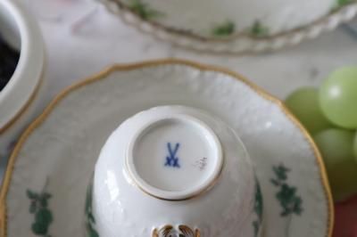 素の白磁に、グリーン1色の単色絵付けでマイセン様式の花を絵付けする事で更に美しい仕上がりとなっています。