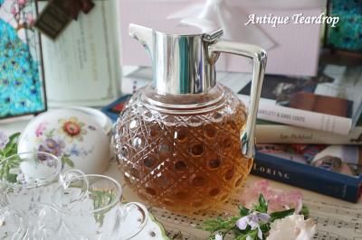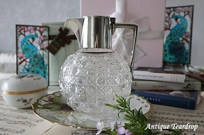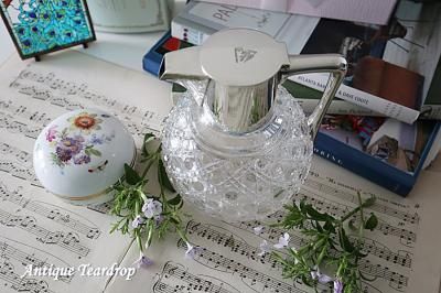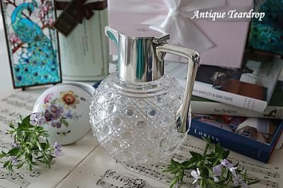 ハンドルと注ぎ口部分に純銀が使われているクリスタルガラスのクラレットジャグになります。